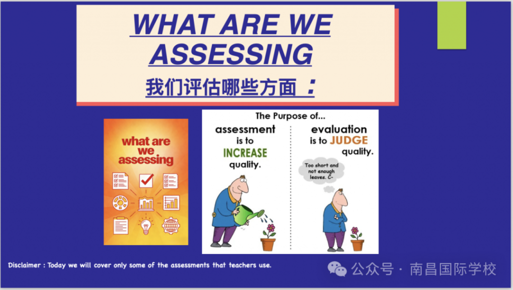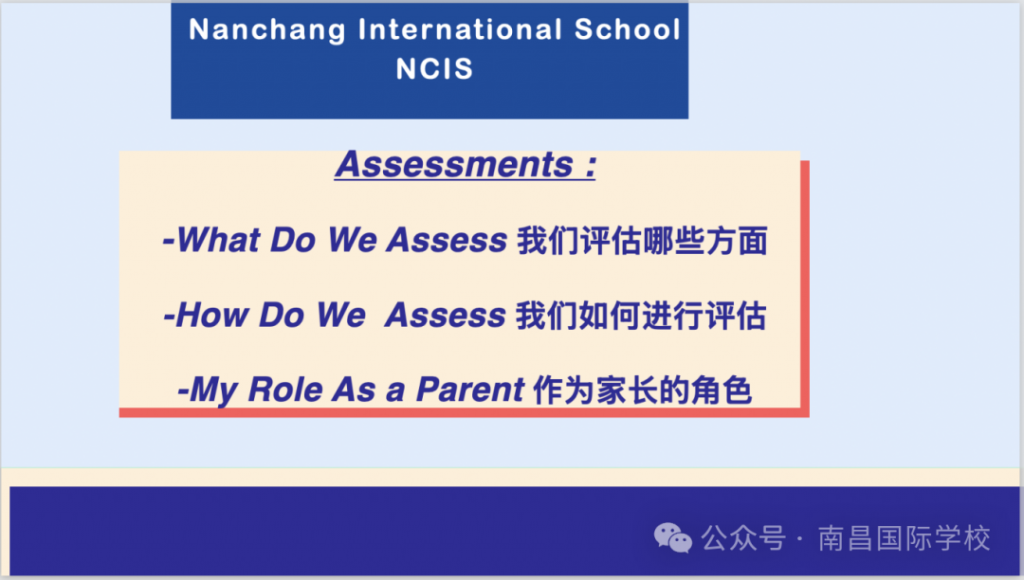 在“评估的类型” 讲座中,Sarah老师说明了学生评估的内容与方式,并强调了家长在支持孩子学习与成长过程中的重要作用。