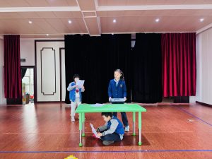 Throughout the rehearsal process, students reflected on their work, identified strengths and areas for improvement, and practised giving and receiving constructive feedback. They rehearsed in front of live audiences, watched other grade performances, and used these experiences to refine their own play. This supported the development of ATL skills, particularly thinking, communication, and collaboration.