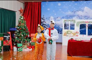 Each student brought unique ideas to the production. For example, Jenny added glitter to her costume to show magic, Joseph included snowflake details, Kevin personalized scene props, and Violet created clay gingerbread dough that transformed into a character in the play. These choices highlighted students’ creativity and willingness to take risks, reflecting the Learner Profile attributes of Risk-taker, Communicator, and Inquirer.
