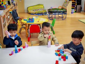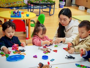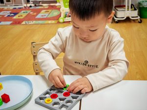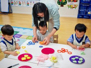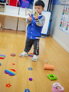 the children in the pre-nursery class embarked on an IB exploration journey about shapes. Equipped with magnifying glasses of various shapes, they excitedly searched around the classroom for circles, triangles, squares, and even hearts and stars, carefully observing and identifying the geometric features of everyday objects. During the “Shape Scavenger Hunt” game, the children experienced the properties of shapes firsthand by sorting and placing different shaped blocks into corresponding trays. Additionally, they not only used clay to create different shapes but also used shaped blocks to assemble pictures of small animals and build homes for them.