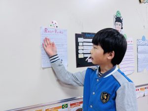 In Lion class, students selected their end-of-unit projects from the Cambridge textbook. They were given three engaging options: creating a class survey, designing a school map, or writing a book about occupations.