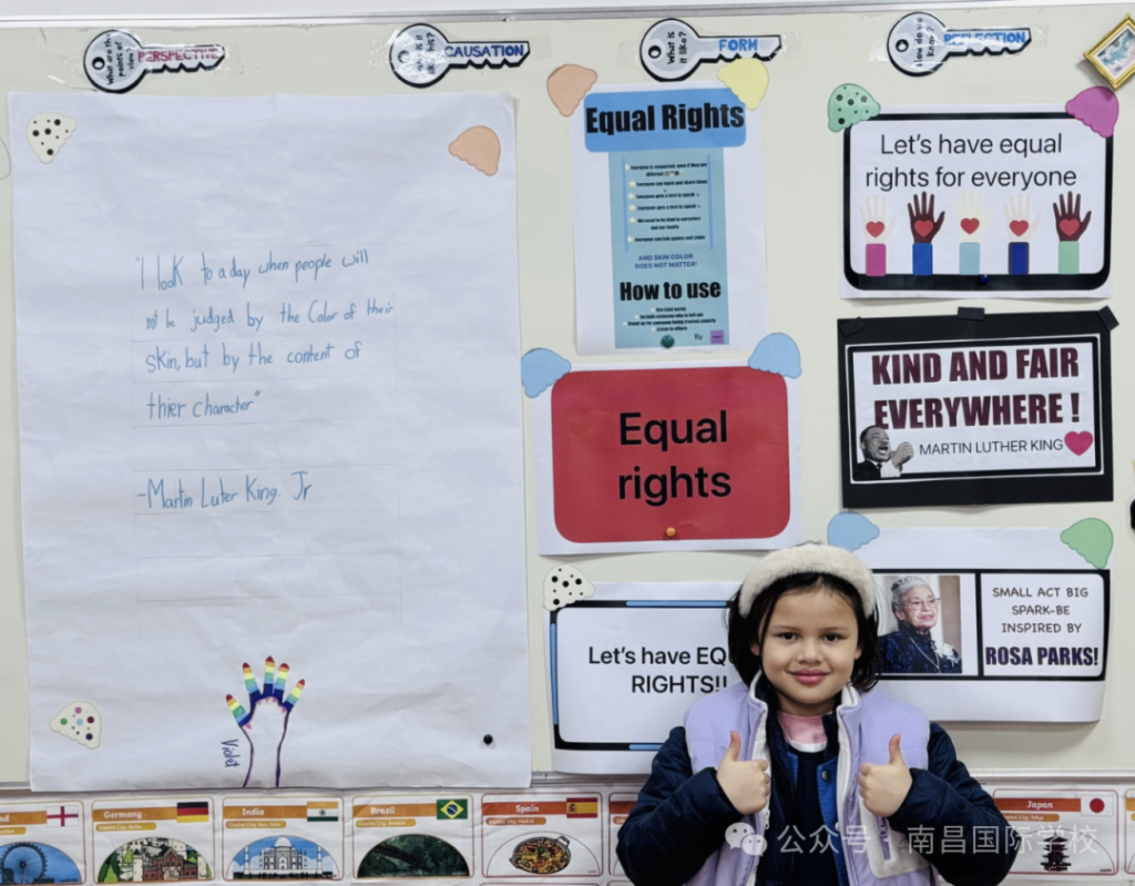 这位学生的行动并未止步于制作海报和组织游行。为了让倡导信息更具影响力,她努力确保行动能与更广泛的社区产生共鸣。她主动征求中文老师的意见,使她的主海报更贴合中国文化与价值观。这不仅是简单的设计调整,更是一次深思熟虑的决定——将平等权利的倡导与本土语境相结合,体现出对学校多元文化的尊重与理解。